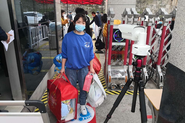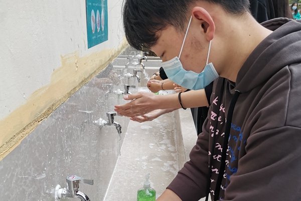 上午7:30,按照计划安排,全校17级和英才班的同学们就陆续返校了,他们在志愿者教师们的引领帮助下,有序的接受消毒、测温,有序地进入教、寝室;在班主任的带领下有序地进行洗手、进入食堂,按间隔一米的要求排着整齐的队伍,领取饭菜单人单位在指定位置就餐。