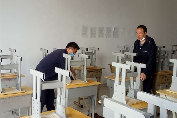 抗击新冠疫情在全国取得全面胜利之后,霍山职业学校就时刻关注上级文件要求,及时制订了“两案九制”,对校园进行了全方位消毒,为学生返校复课而积极准备着。