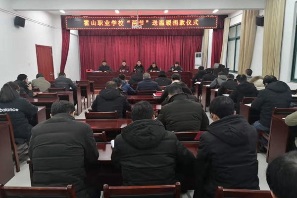 1月16日下午,霍山职业学校在明德楼五楼报告厅举行“两节”送温暖捐款仪式。全体教职员工,在校工会的组织下积极捐款,为贫困家庭献上了自己的一份爱心。