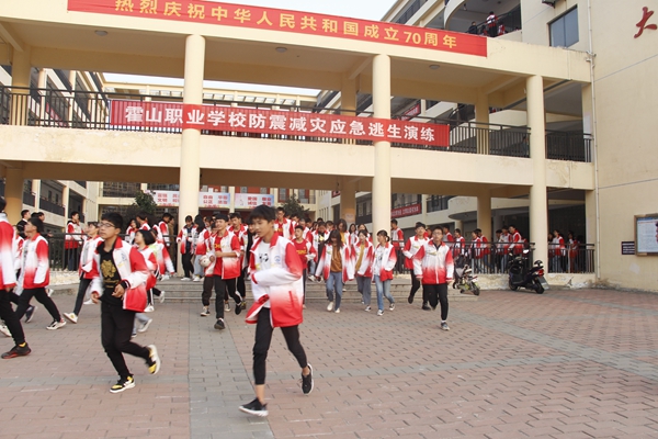 11月4日下午,霍山职业学校举行了2019年秋学期防震消防应急逃生演练。演练由校长王荣飞担任总指挥,全校学生参与了演练。