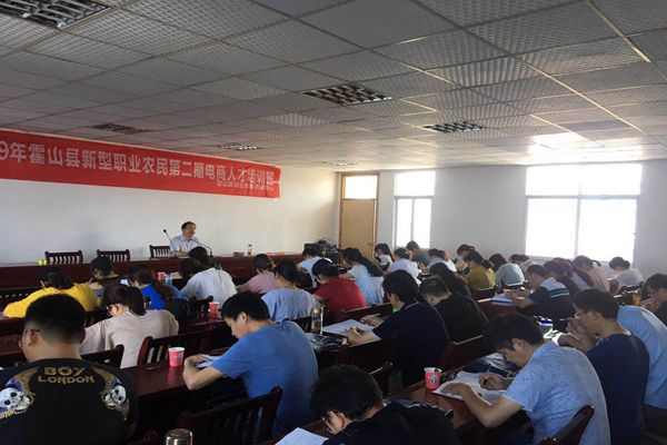 2日上午学员参观了大别山电商产业园,然后到安徽中晟分析检测科技有限公司参观,中午12点30分,农广校潘俊青校长领导让学员对本期培训班进行满意度测评,班主任李劲松教学员在云上智农注册;13点钟开始结业考试,县农业农村局总农艺师陈劲松到考场巡视。考试时结束后,还照了结业合影,本期农村电商人才培训班赢得了学员的一致好评。