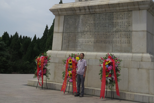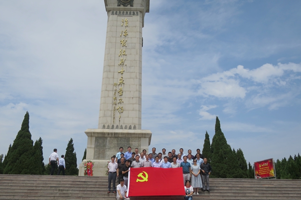 党员干部们冒着烈日,站着整齐的队伍,在烈士纪念碑前,首先向纪念碑敬献了花篮,接着在总支杨永存同志的带领下,重温了入党誓词,并向革命烈士进行了三分钟鞠躬默哀。最后,大家一起在解说员的解说下参观了淮海战役双堆集歼灭战纪念馆。