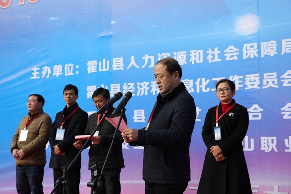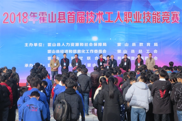 12月20日下午,霍山县首届(2018年)技术工人职业技能竞赛开幕式在霍山技工学校明德楼前广场隆重举行。县教育局局长王大春主持,县委常委、宣传部长张润之,副县长郝晓武、朱静,县委组织部副部长、县人社局局长叶俊,霍山县妇联主席姚敏,中小企业局副局长许扎中,霍山县总工会副主席谢军, 共青团县委副书记彭德奇,霍山技工学校校长王荣飞及相关领导出席了开幕式。
