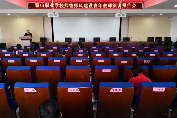 10月19日下午,霍山职业学校在明德楼六楼报告厅举行了师德师风建设青年教师演讲报告会。报告会由工会主席杨从家主持。全体教职工聆听了报告会。