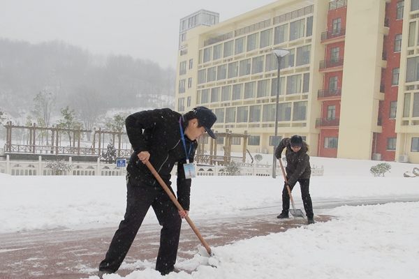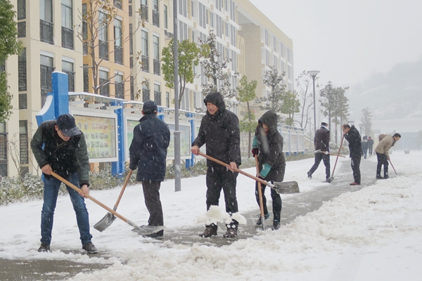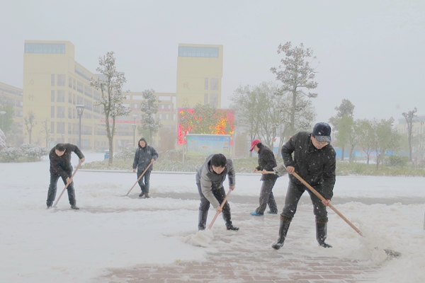 霍山职业学校因大多为寄宿学生,学校按照上级有关规定继续正常开展教学活动。为此,成立了霍山职业学校雨雪天气应急领导组,出台了《霍山职业学校暴雨、暴雪天气应急预案》。同时,在教学楼、实训楼、食堂、宿舍等地的台阶、过道、走廊上铺设了防滑地毯,并不断地组织人员清扫;对走读生要求必须有家长来接方可离校,对住校生进行安全教育,杜绝发生一切安全事故;学校领导和在校的教师积极拿起铁锹,在校园内为学生们铲出了一条条安全通道。