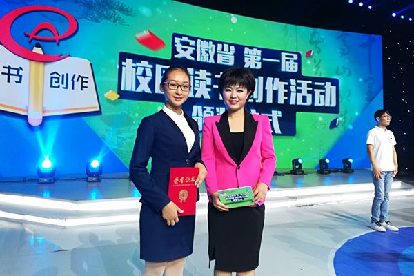 8月25日,霍山职业学校学生廖家丽在安徽省电视台参加了安徽省首届“校园读书创作”活动特等奖比赛现场录制活动,经过激烈的角逐,廖家丽脱颖而出,并荣获了特等奖。廖家丽成为六安市在该项活动中唯一入围并获此殊荣的中职选手,也是六安市整个高中组的唯一一个特等奖获得者。8月26日晚上9:00左右,廖家丽和她的指导老师周永安在电视台还参加了颁奖仪式录制活动。