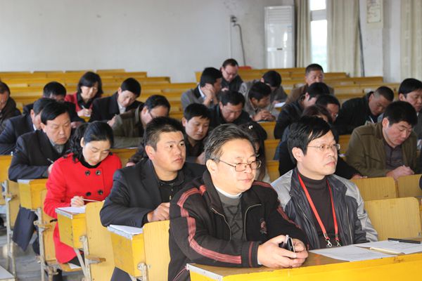 2014年11月6日下午,霍山职高全体党员及部分群众代表在阶梯教室召开党的群众路线教育实践活动总结大会。县委第八督导组副组长胡维清、县委党校幸荣同志到会指导,会议由王荣飞校长主持。