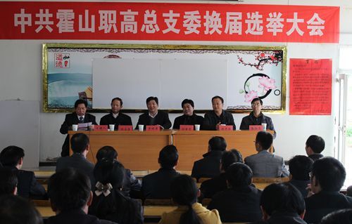 2013年11月14日下午,中共霍山职高总支委换届选举大会在阶梯教室隆重举行。县直工委副书记刘圣虎,县教育局党组书记、局长罗瑞雪,教育局党组成员、工会主席彭少国,市政协委员彭以树应邀参加会议,会议由霍山职高总支副书记李名武同志主持。