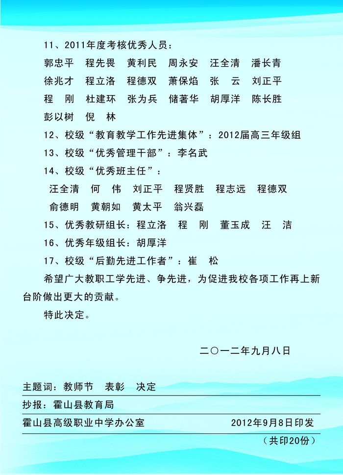 下一条: 霍山职高2012年秋学期第一次中层以上干部会议纪要