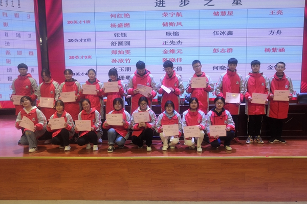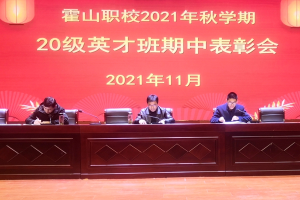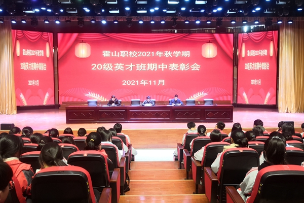 11月29日下午,霍山职业学校在知行楼报告厅召开20级英才班期中表彰大会,英才班教务主任罗贤平主持人会议,20级英才班各班班主任及全体学生参加了会议。