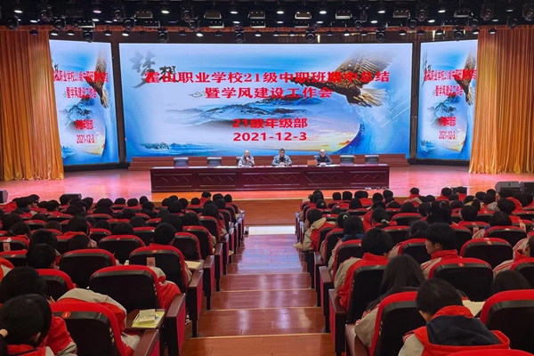 12月3日,霍山职业学校在知行楼报告厅召开21年级中职班期中总结暨学风建设工作会。21级全体学生及班主任参加了会议。