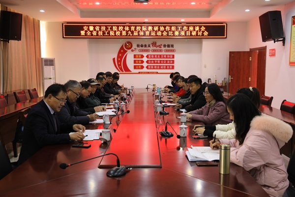 12月17日,安徽省技工院校体育校际教研协作组工作座谈会暨全省技工院校第九届体育运动会比赛项目研讨会在霍山技工学校举行。全省技工院校体育校际协作组成员学校相关负责人参加会议。