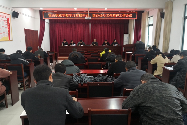 为贯彻落实中办、国办《关于加强新时代关心下一代工作委员会工作的意见》(厅字[2021]46号)文件精神,近日,霍山职业学校组织召开了学习贯彻中办、国办46号文件精神布置会,学校全体校务会成员、班主任参加了会议。