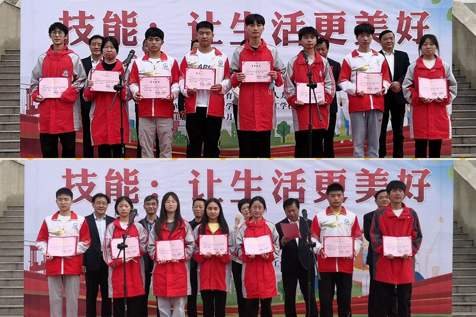 人社局副局长廖家武在仪式上宣读了“技能:让生活更美好”学生技能大赛表彰文件。主席台领导为获奖选手颁发了荣誉证书。
