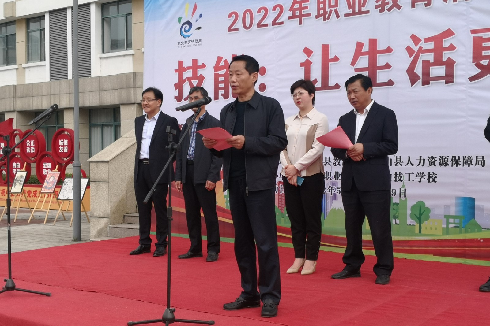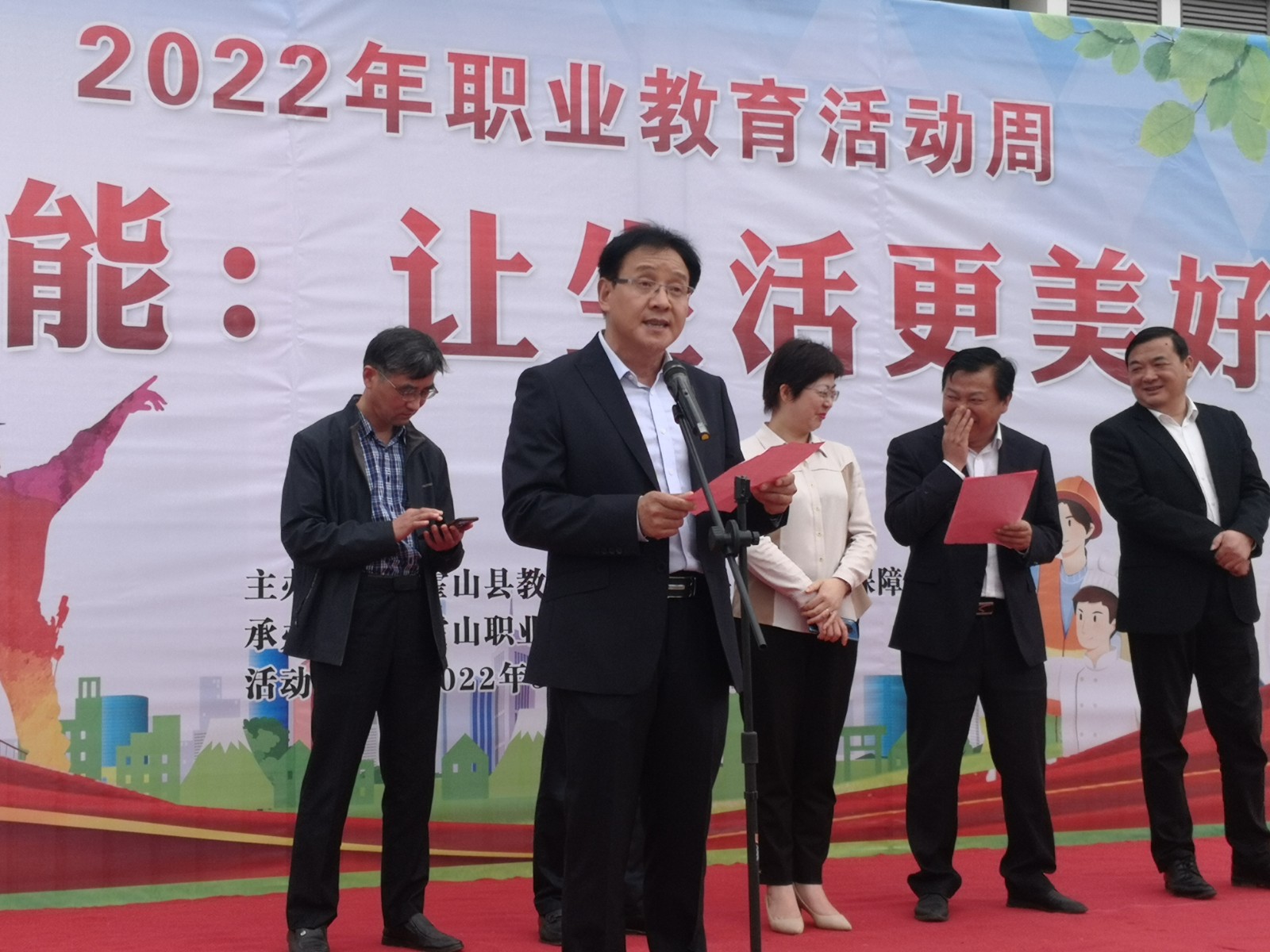副县长汪琴出席仪式,并宣布:霍山县2022年职业教育活动周暨迎接第46届世界技能大赛活动正式启动。