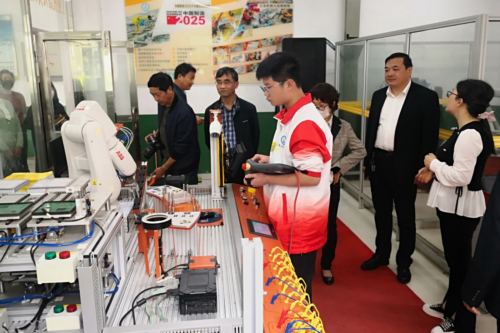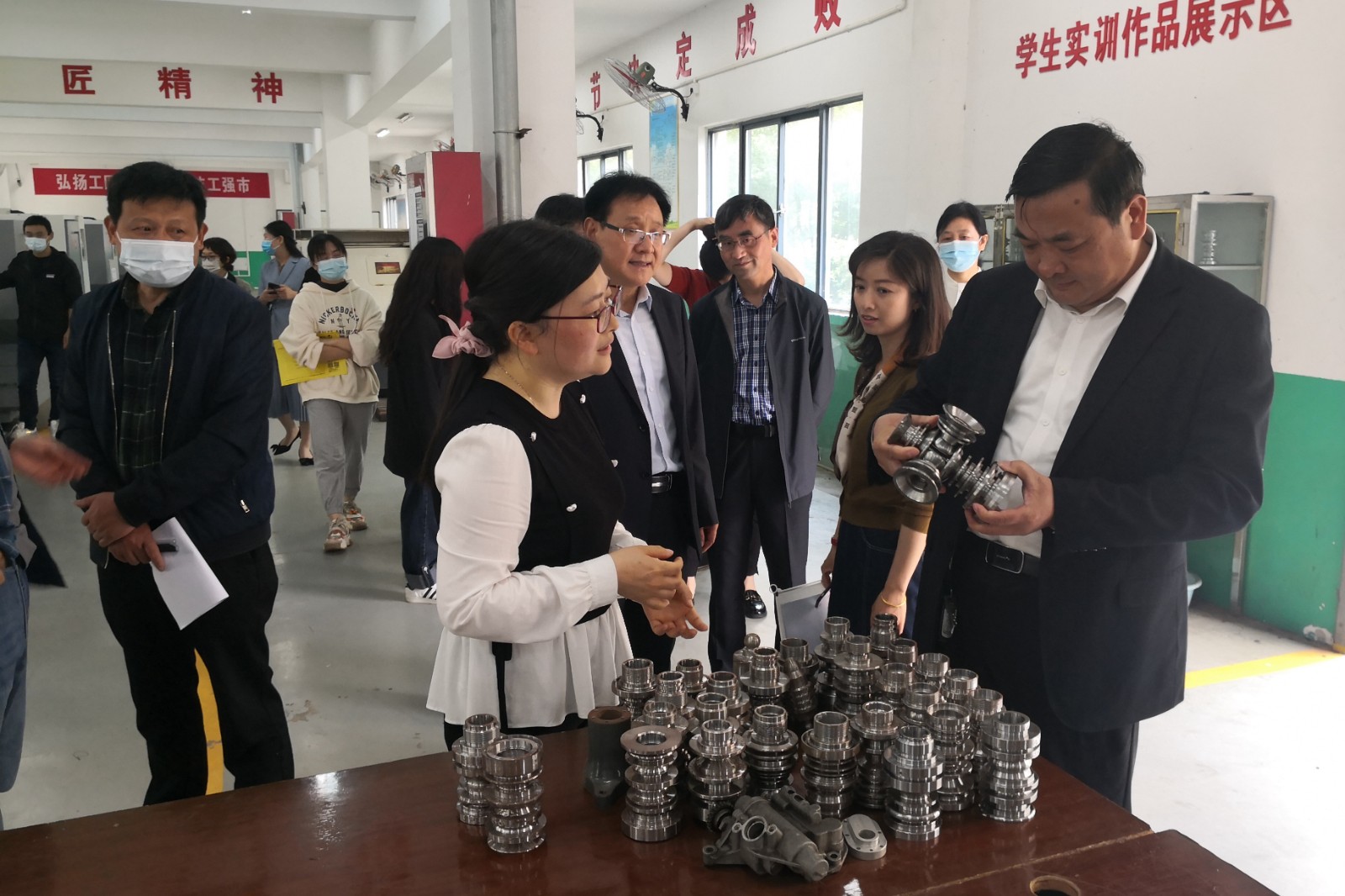 启动仪式结束后,在校领导的带领下,出席活动的领导和嘉宾一起,参观了学校部分教育教学成果展,以及学校的现代农艺阳光玻璃大棚及数控车间等校内实训室。