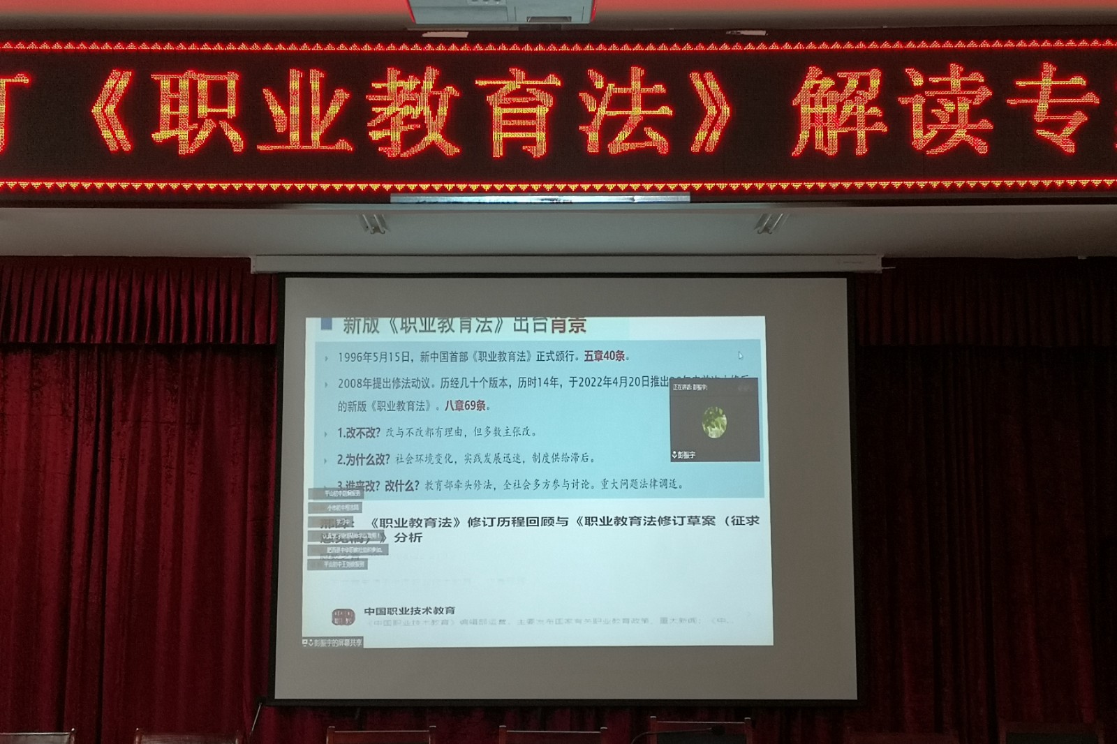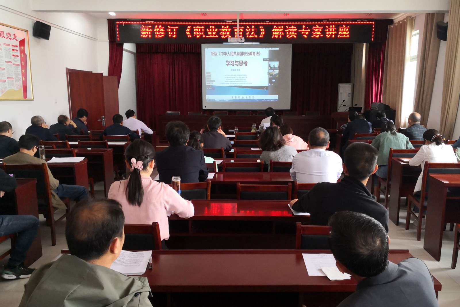 5月18日上午,霍山职业学校组织教师,在明德楼五楼报告厅收看由安徽省中华职业教育社举办的新修订的《职业教育法》解读专题讲座。校领导及近百位教师聆听了讲座,还有许多教师通过手机端收看了讲座。