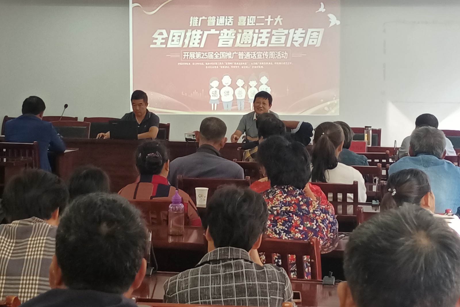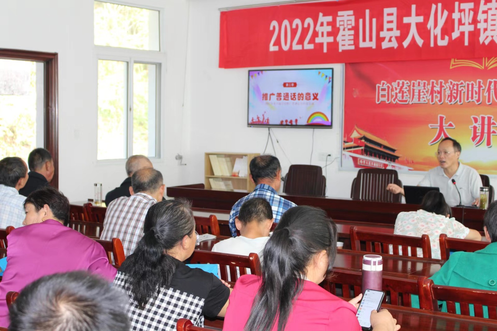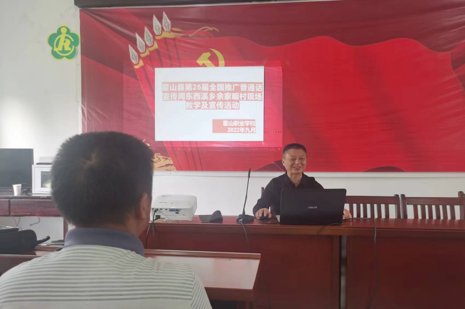 2002年9月12日至18日是第25届全国推广普通话宣传周,今年的活动主题为“推广普通话,喜迎二十大”。本届活动周,霍山职业学校举行了系列推普活动,而把“送技下乡”与“推普下乡”相结合是今年推普周的首次尝试,也成为了推普周的亮点之一。