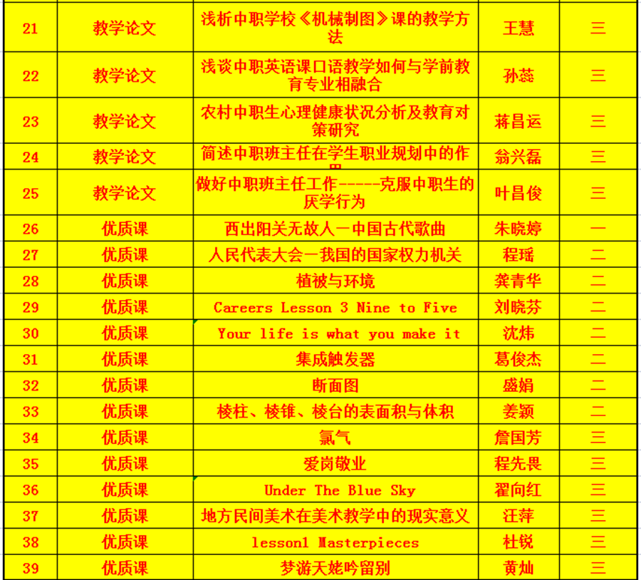 在教师教育教学信息化大赛中,学校共有9件作品分别荣获市级一、二、三等奖;在六项电教学术作品评比活动中,有5件作品获奖,其中一等奖4件,创学校历年来最好成绩;在“三优”作品(优秀论文、优秀软件、优质课)评选中,共有39件作品获奖,获奖数量位居全市中职之首。