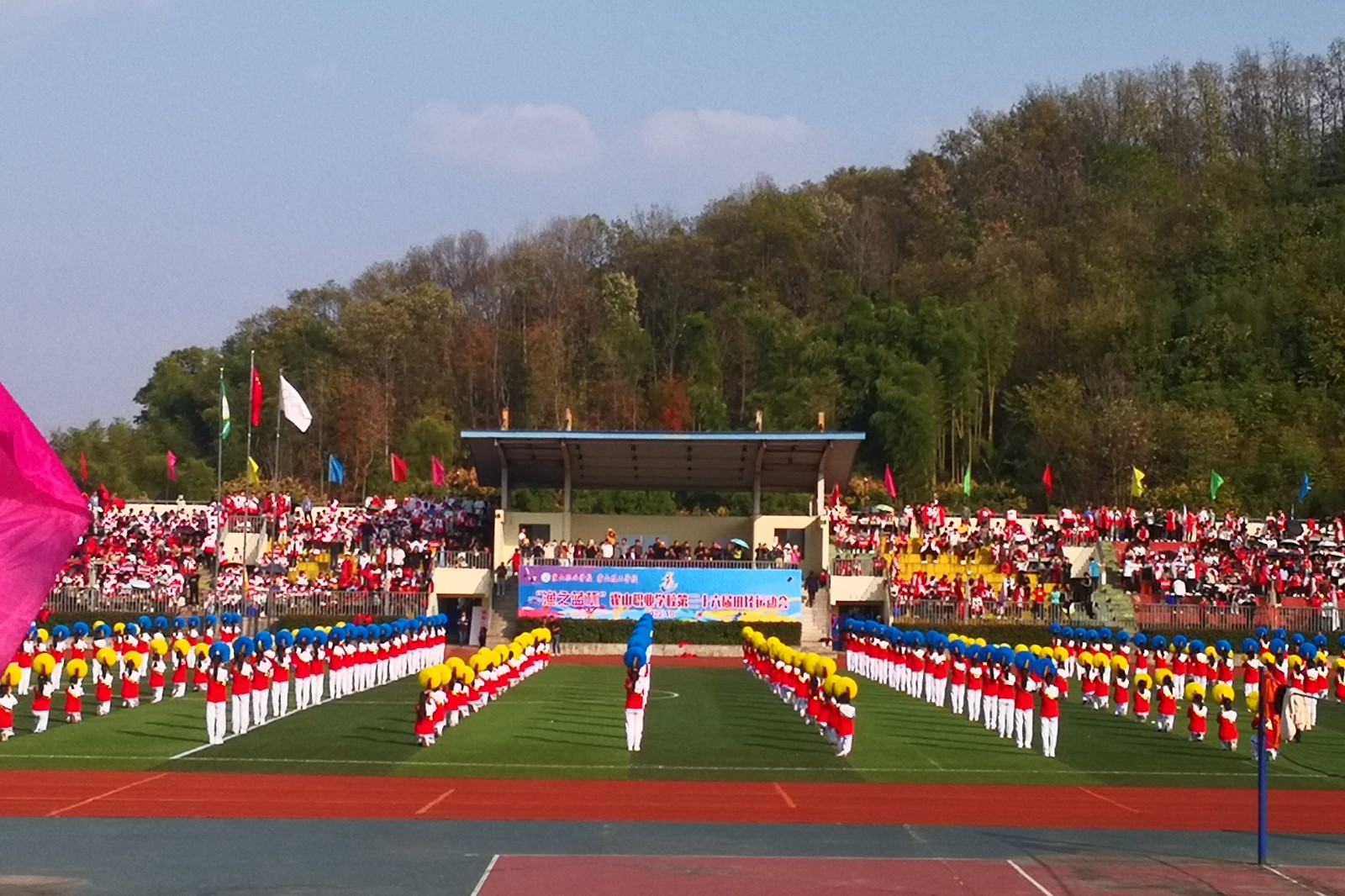 风和日丽,阳光灿烂。10月31日下午,“渔之蓝杯”霍山职业学校第36届秋季田径运动会在学校田径运动场顺利开幕,霍山县委教育工委委员教育局副局长刘守忠,校领导班子全体成员出席了开幕式,副校长杨从家主持开幕式。