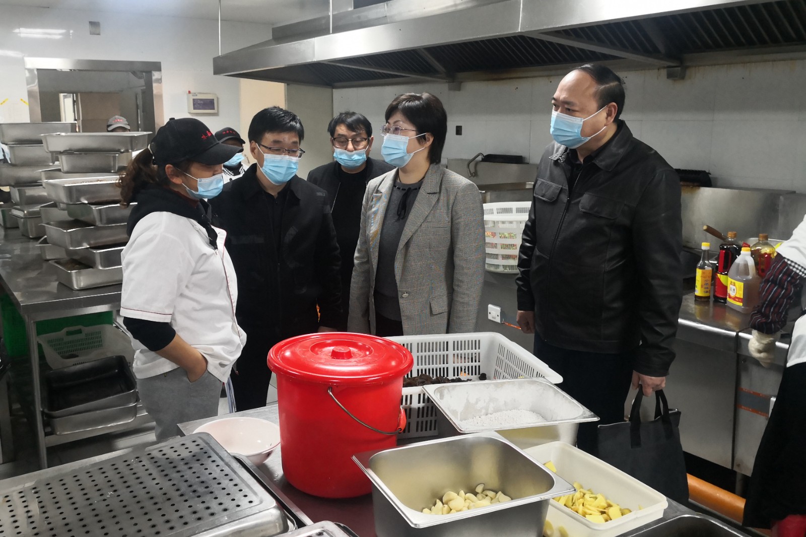 汪县长一行查看了学校食堂,对食堂环境、基础设施、采购、加工、消毒、食品留样等进行了详细的检查。