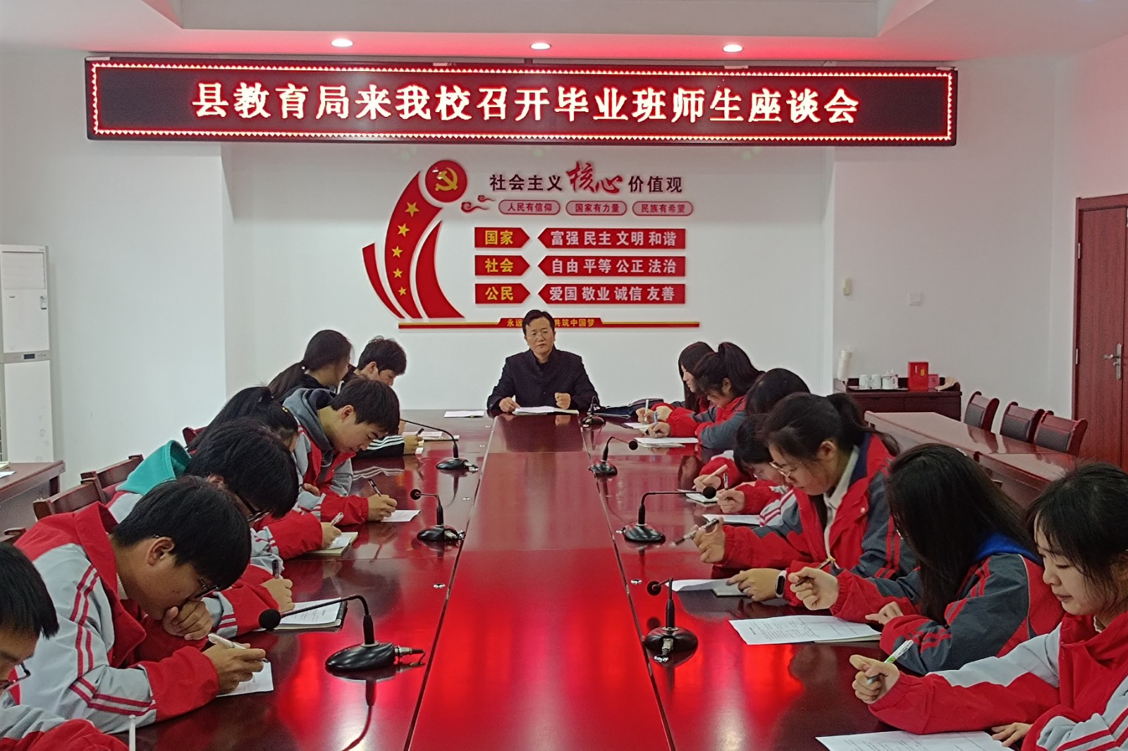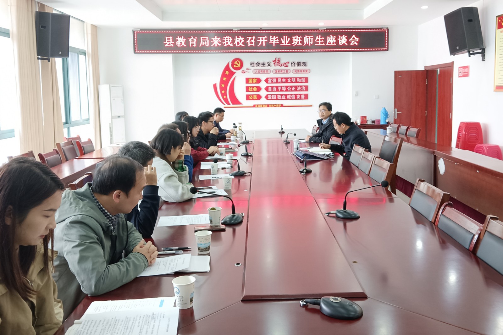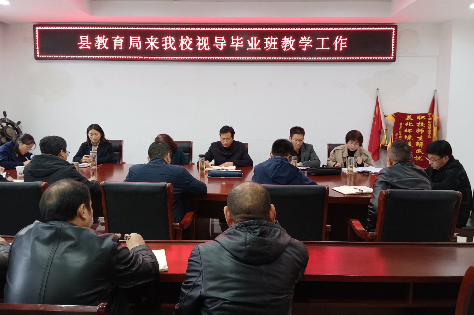 11月23日,县教育局教研室陈兆先主任、督导室刘勇主任等一行8人来我校开展毕业班教学视导工作。此项工作既是对我校毕业班教学和管理工作的检测,更是对学校教育教学工作全方位的指导和促进。