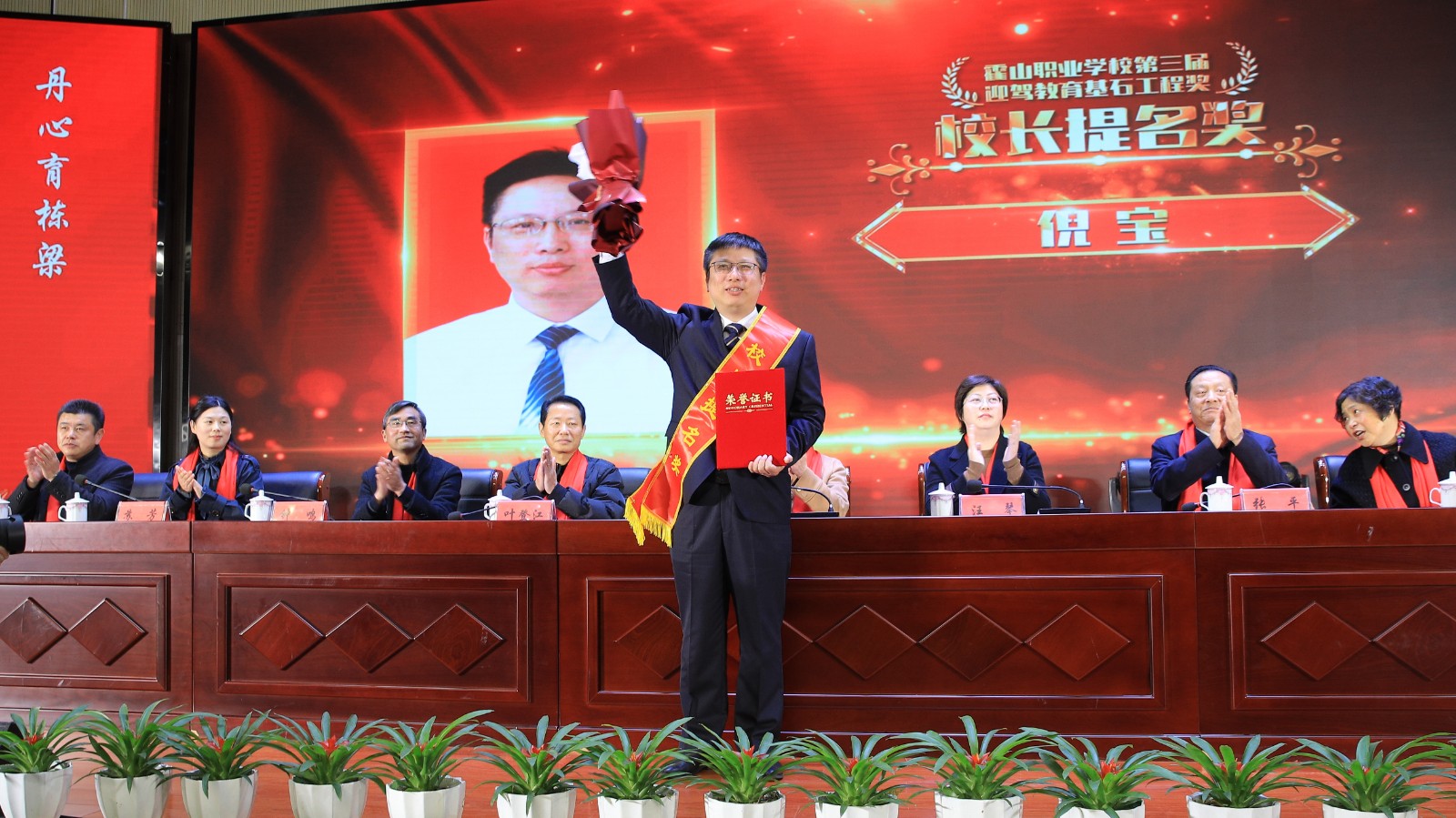 会上,副校长倪林宣读了安徽迎驾集团和霍山职业学校联合表彰文件,决定对24位优秀教师分别给予卓越奉献奖、卓越耕耘奖、优秀管理奖、校长提名奖和教育功勋奖,对86名优秀学生给予卓越学子奖。