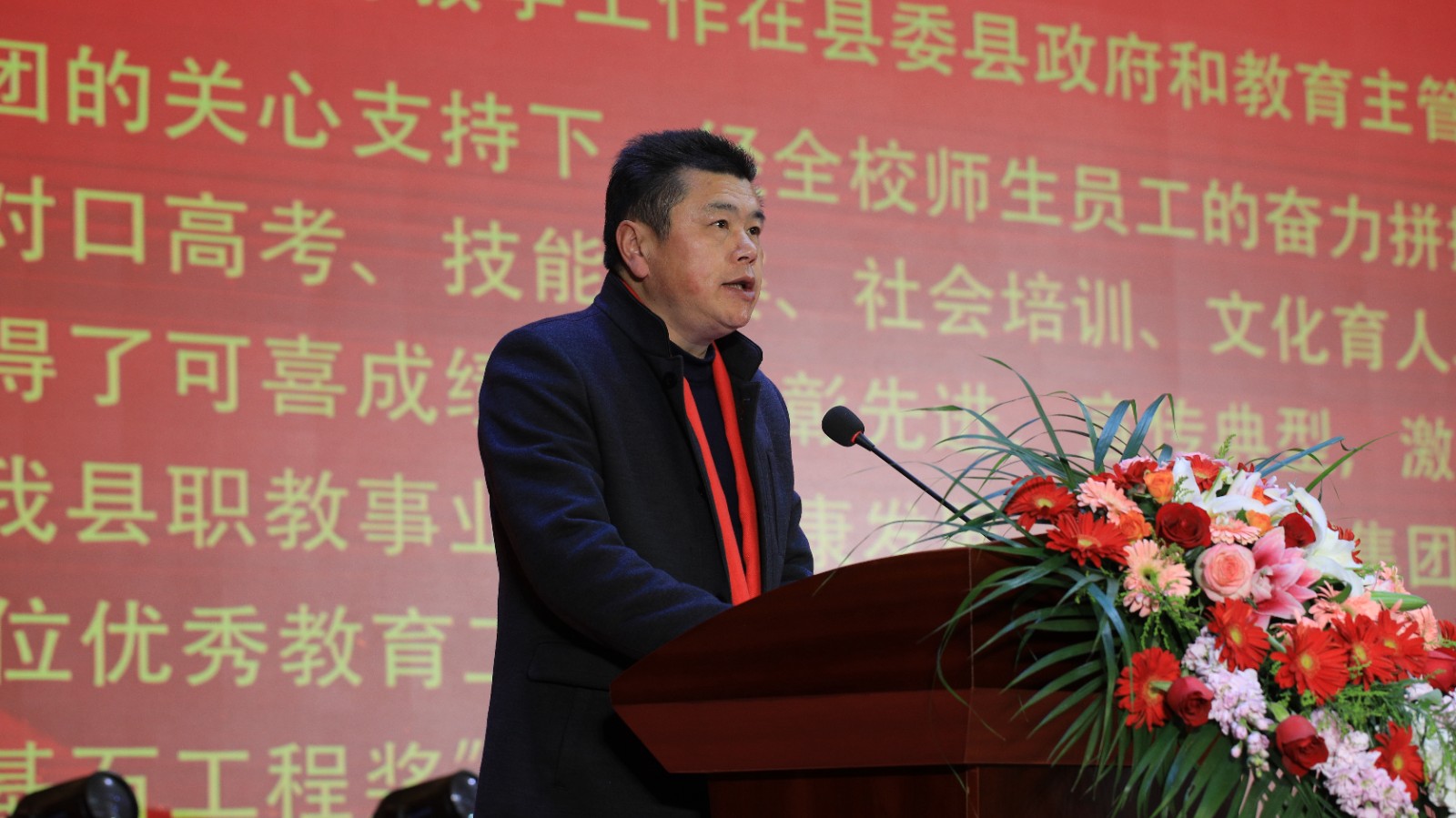 副县长汪琴在大会中作总结讲话,她代表县委县政府对获奖师生表示祝贺,对长期关心支持我县教育事业的迎驾集团和社会各界表示衷心感谢!对职校各项事业的发展给予充分肯定,同时提出了三点希望和要求:一是坚定信心,乘风破浪——要锤炼品格、增长学识、锻炼技能;二是强基固本,塑形铸魂——要持之以恒立师德、持之以恒正师风、持之以恒强师能;三是凝心聚力,共谋发展——要在校园安全上下功夫、在文化建设上下功夫、在学校管理上下功夫。