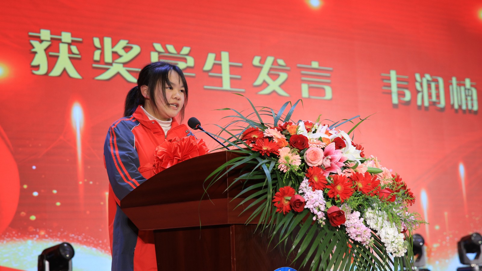 出席大会的领导嘉宾为获奖教师及获奖学生依次颁发了荣誉证书和奖金。孙蕊老师、韦润楠同学分别代表获奖教师和获奖学生发表了获奖感言,与会同学在大会上还进行了集体宣誓。