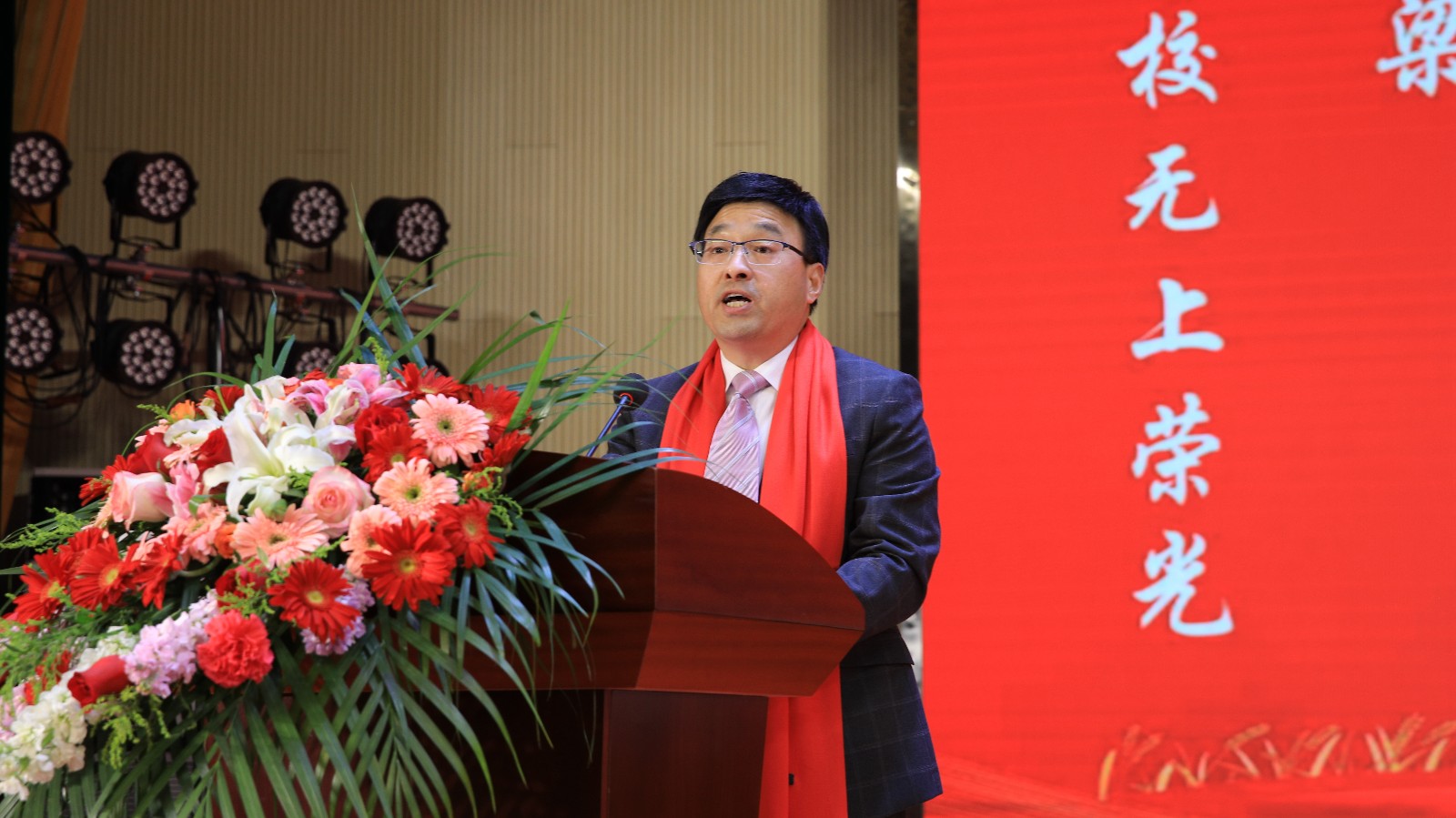 校党总支副书记、副校长(主持工作)何祥庆首先在大会上致辞,他代表学校党政班子和全体师生,向莅临大会的各位领导和嘉宾表示热烈地欢迎!向受到表彰的老师和同学们致以诚挚地祝贺!向一直以来关心关爱学校发展的迎驾集团、迎驾慈善基金会领导致以最崇高的敬意!他指出:“迎驾教育基石工程奖”在我校的设立,是安徽迎驾集团关心支持教育事业发展的一大善举,是对我校办学成果的充分肯定,是对全校师生刻苦自励、锐意进取精神风貌的高度认同。希望受到表彰的老师和同学们再接再厉,续写奉献之歌、奋斗之歌,不断取得新的更大成绩。