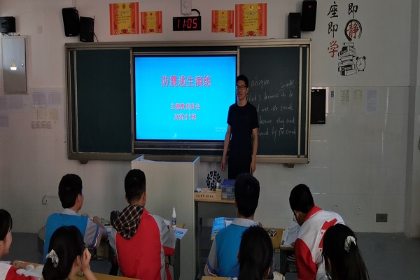 政教处主任余胜安对全校班主任进行工作布置,要求在周一的班会课中宣传防震减灾的相关知识,让同学们对地质灾害有一定的认识。为了达到演练的实际效果,学校制定了防震减灾应急逃生演练方案,并要求在演练过程中做到有序疏散,谨防安全事故的发生。