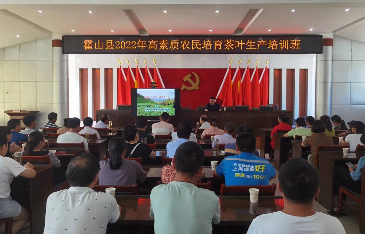 7月22日,正值大暑时节,霍山县职业技能培训中心在黄芽茶之乡大化坪镇举办高素质农民培育茶叶生产培训班。上午9点举行了开班典礼,参加开班典礼的领导有县农业农村局总农艺师陈劲松、大化坪镇人大主席朱守海、县科协程清荷、霍山职业学校副校长杨从家、培训中心副主任李城成等出席开班式。